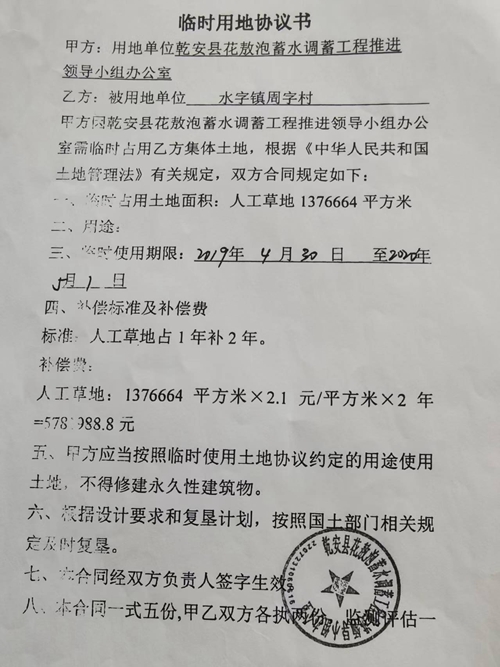 到了2019年9月,乾安县花敖泡蓄水调蓄工程需临时占用该草原一年,相关部门与周字村签订《临时用地协议书》,确定补偿款为5781988.8元,并通过《征地补偿资金发放明细表》明确该笔款项归杜立军所有,乾安县花敖泡蓄水调蓄工程推进领导小组办公室、水字镇政府、周字村村委会均在明细表上签字盖章确认。当月30日,补偿款已足额汇入指定专户,眼看款项即将到账,杜立军却等来了意外的消息。
