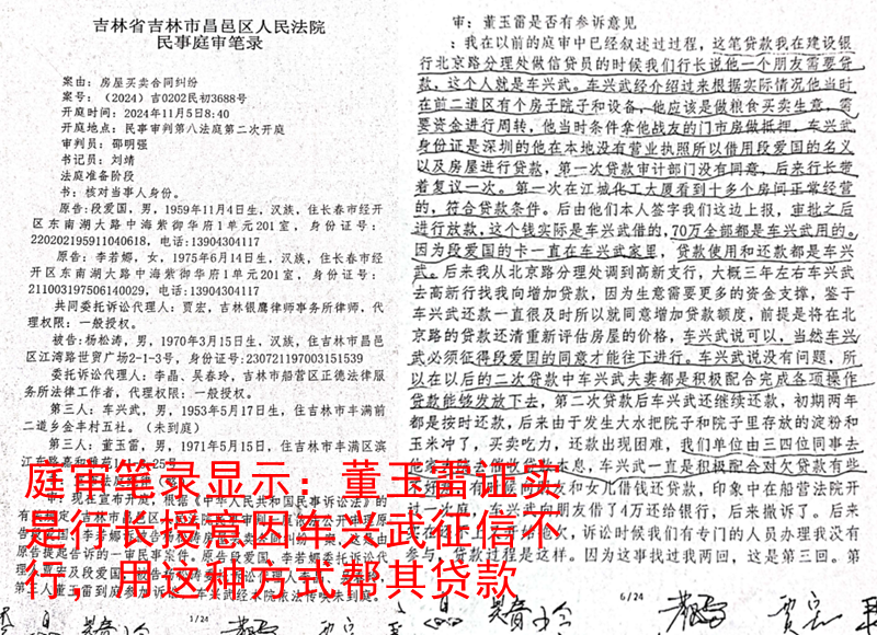 段爱国、李若娜的“被贷款”遭遇,被一份份银行操作记录清晰佐证。二人提供的证据链显示,涉案贷款从逾期到后续处理的全过程中,建行吉林市分行的所有行为都绕开了他们,直指实际借款人车兴武。